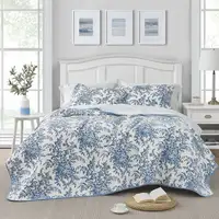 This set includes a vibrant, patchwork-style quilt and two pillow sets. With its artistic depiction of a bridge and vermiculture quilting for added texture, it is designed to fit full and queen size beds.