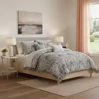 Enhance your bedroom decor with this silver queen comforter set. Its sleek, silky finish adds an element of sophistication to any room’s aesthetic.